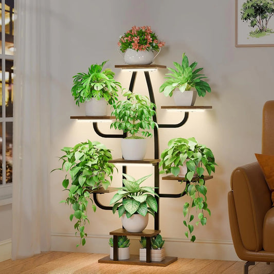 Plant Stand Indoor 8-Tier with Grow Light - Metal Corner Shelf