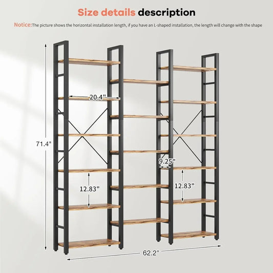 Triple Wide 6 Tier Bookshelf - Shape Changeable & Modern